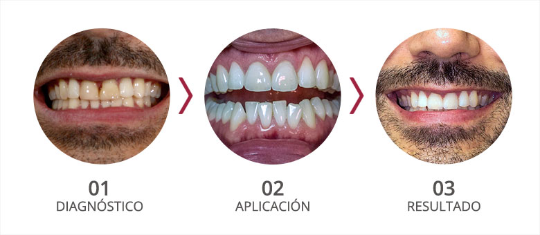 En este caso, se coloca un material especial, en capas pequeñas y uniformes, que respete el color original de los dientes, generando así uniformidad y una armonía visual de la sonrisa.